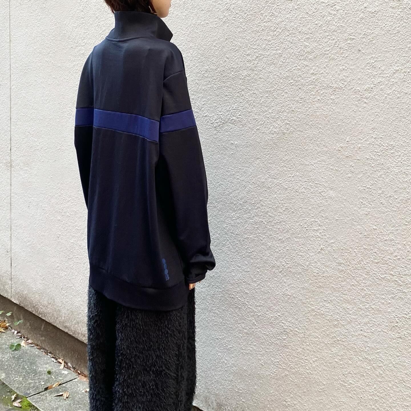 ダークネイビーにブルーの配色が可愛いトラックジャケットです。
