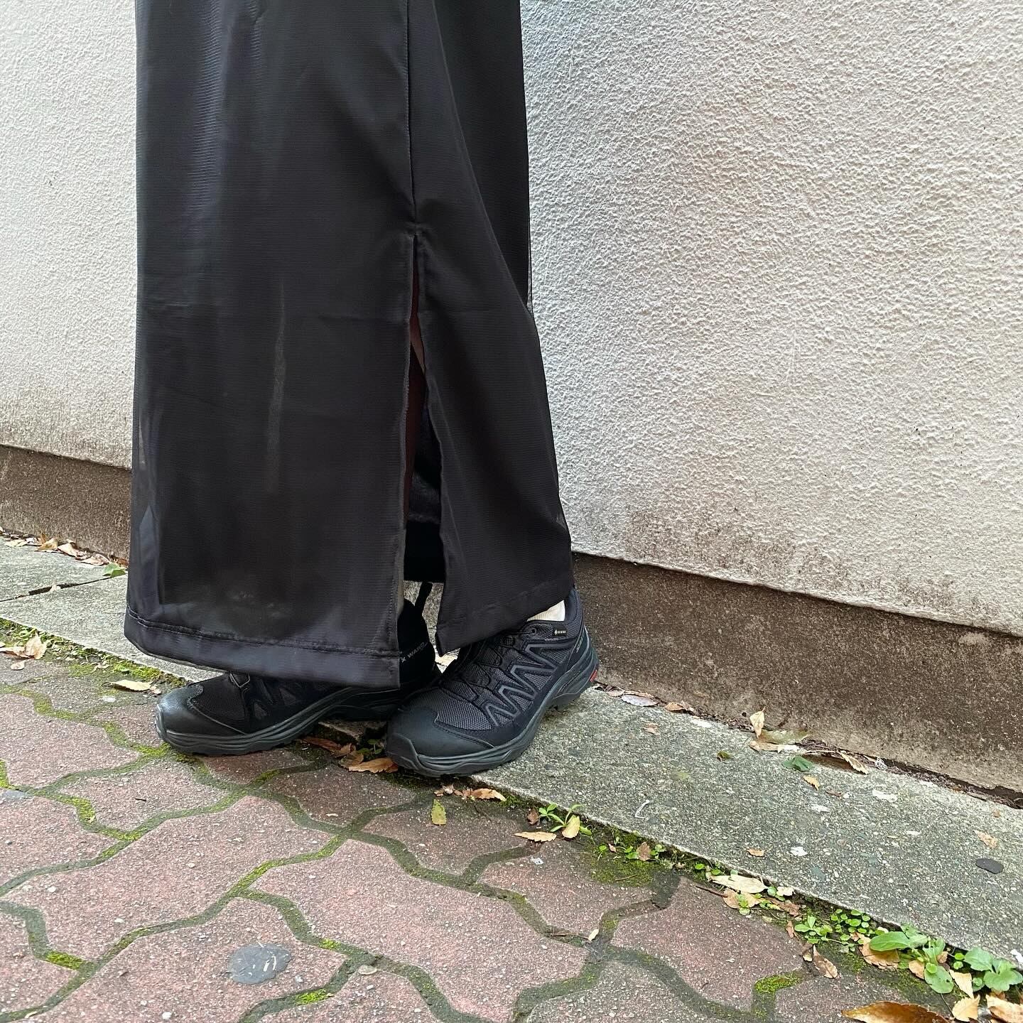 メッシュ素材が珍しいカーゴスカートです。カジュアルな要素がありつつ、パンツよりも少しフェミニンな印象でお召し頂けます。