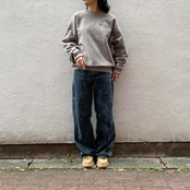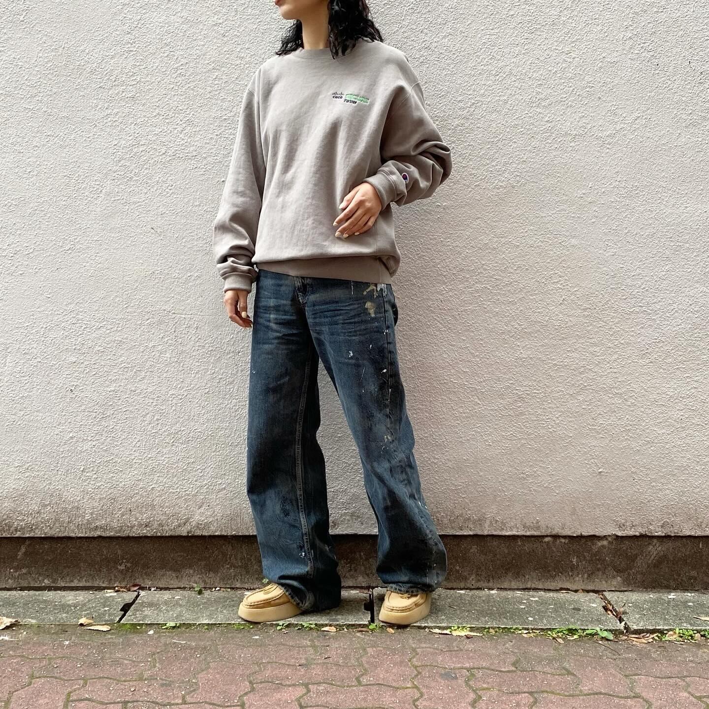 絶妙なグレージュカラーにグリーンの刺繍が映えるchampionのスウェットです。