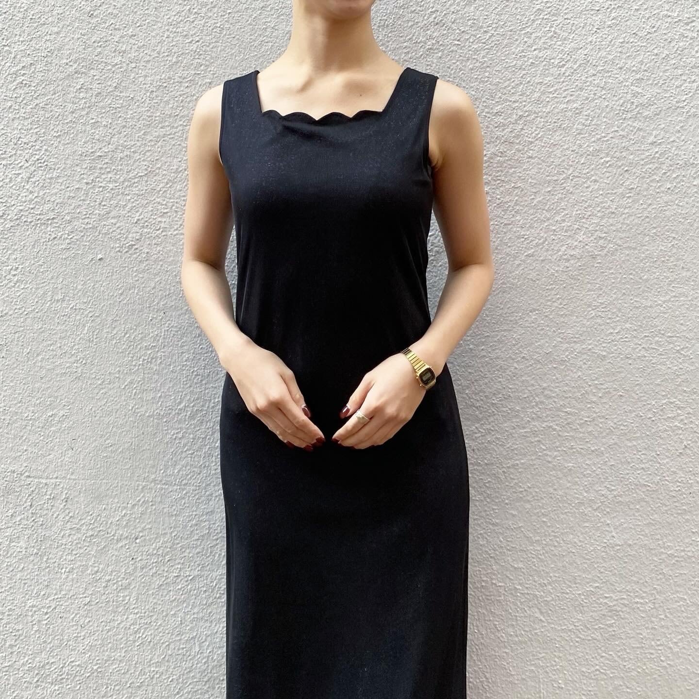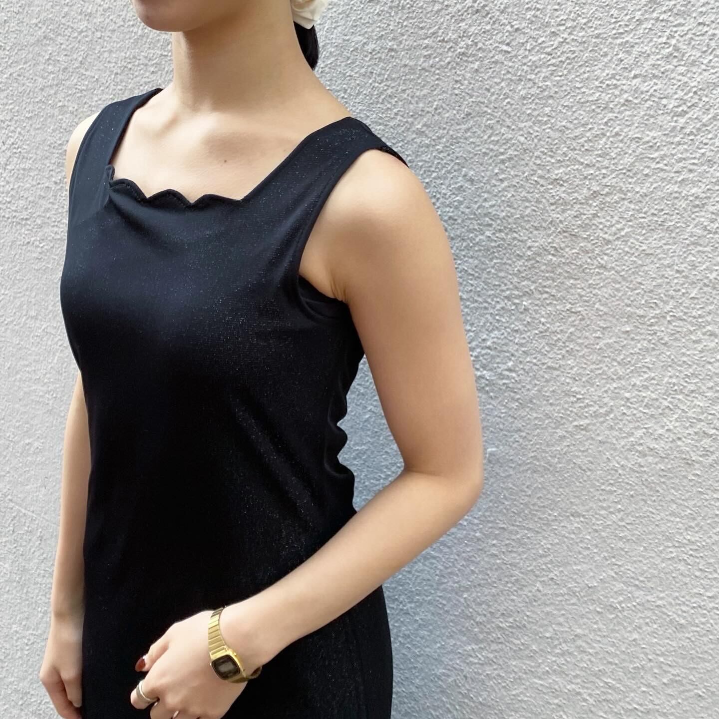 ラメ糸が織り交ざった生地にシアー生地が重なった繊細な煌めきが美しいワンピースです。