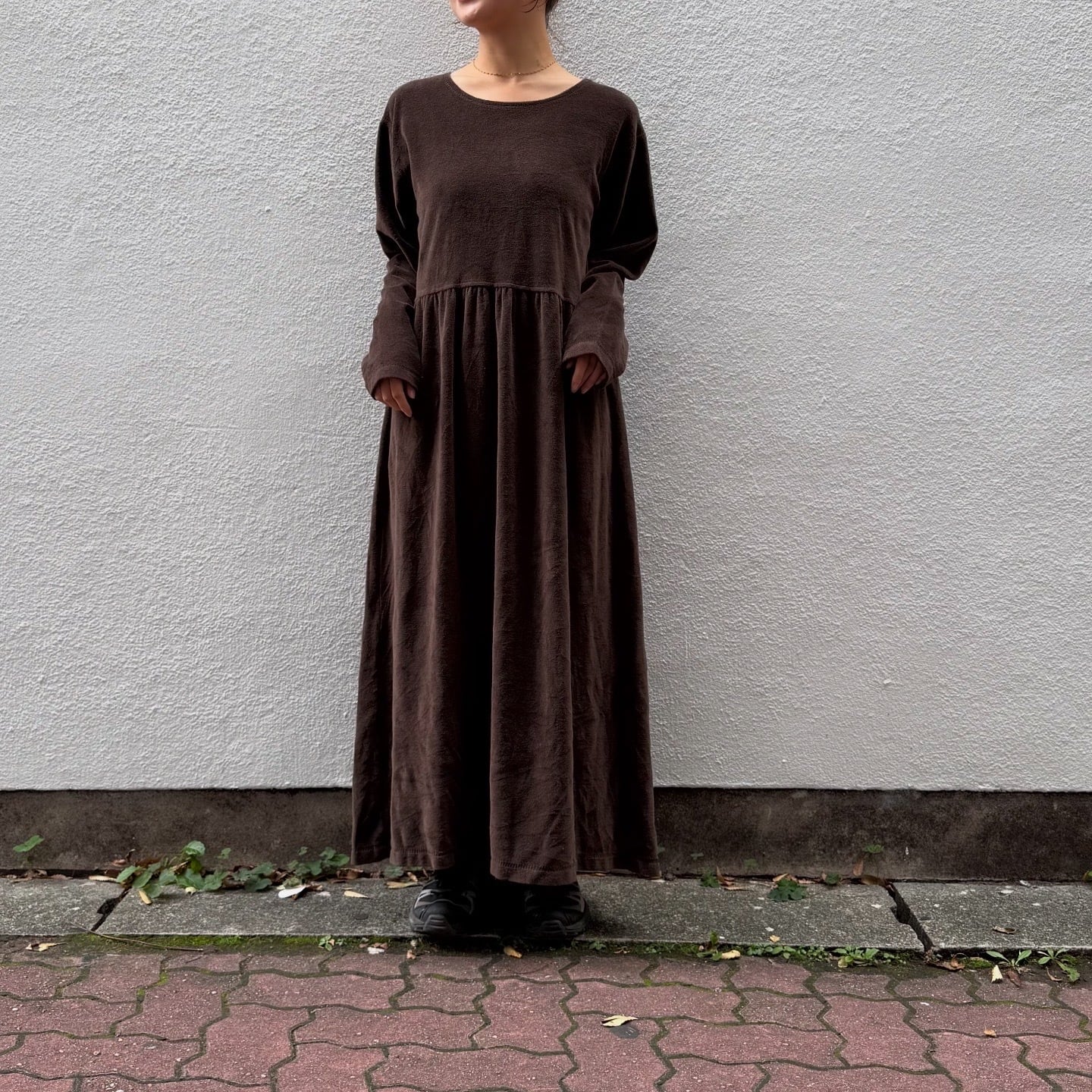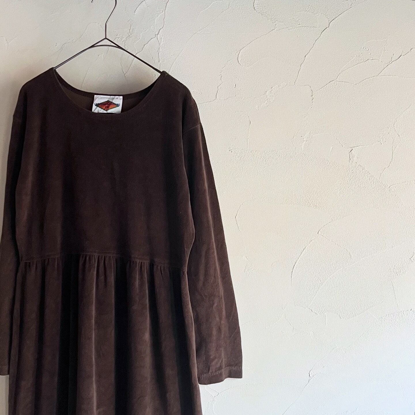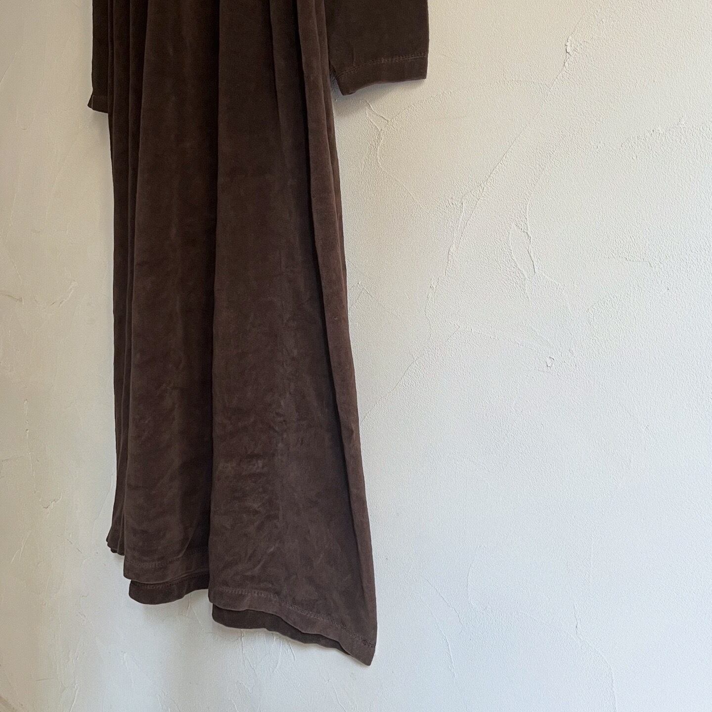 マット感の強いブラウンのベロアが素敵なワンピースです。