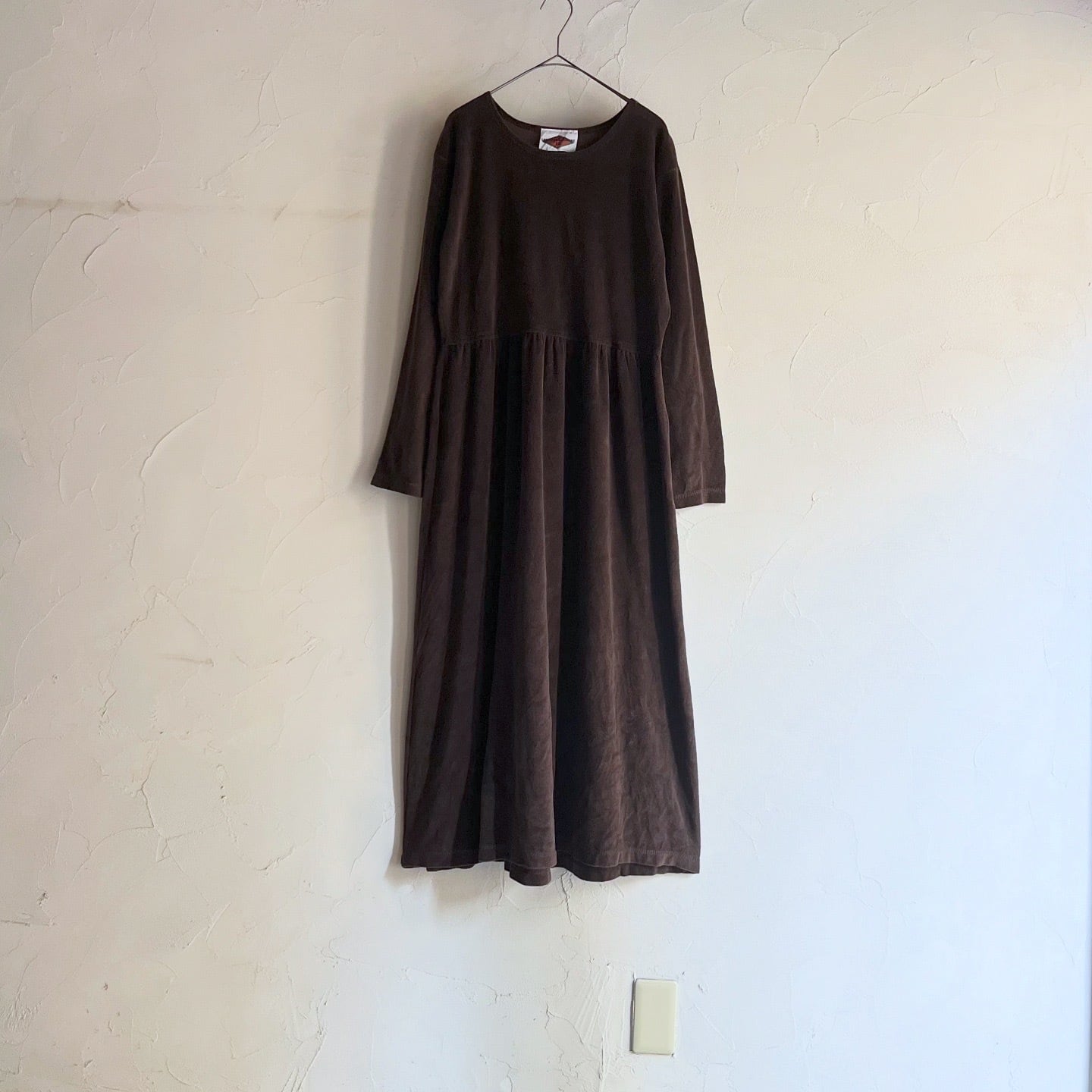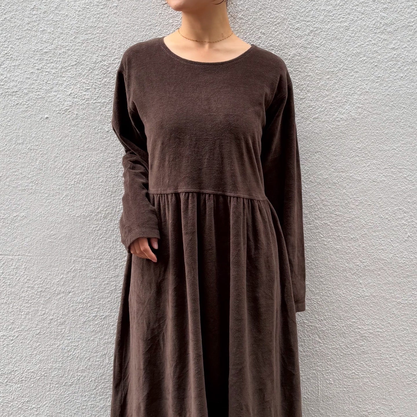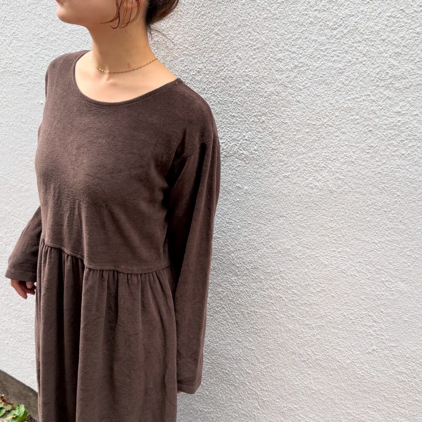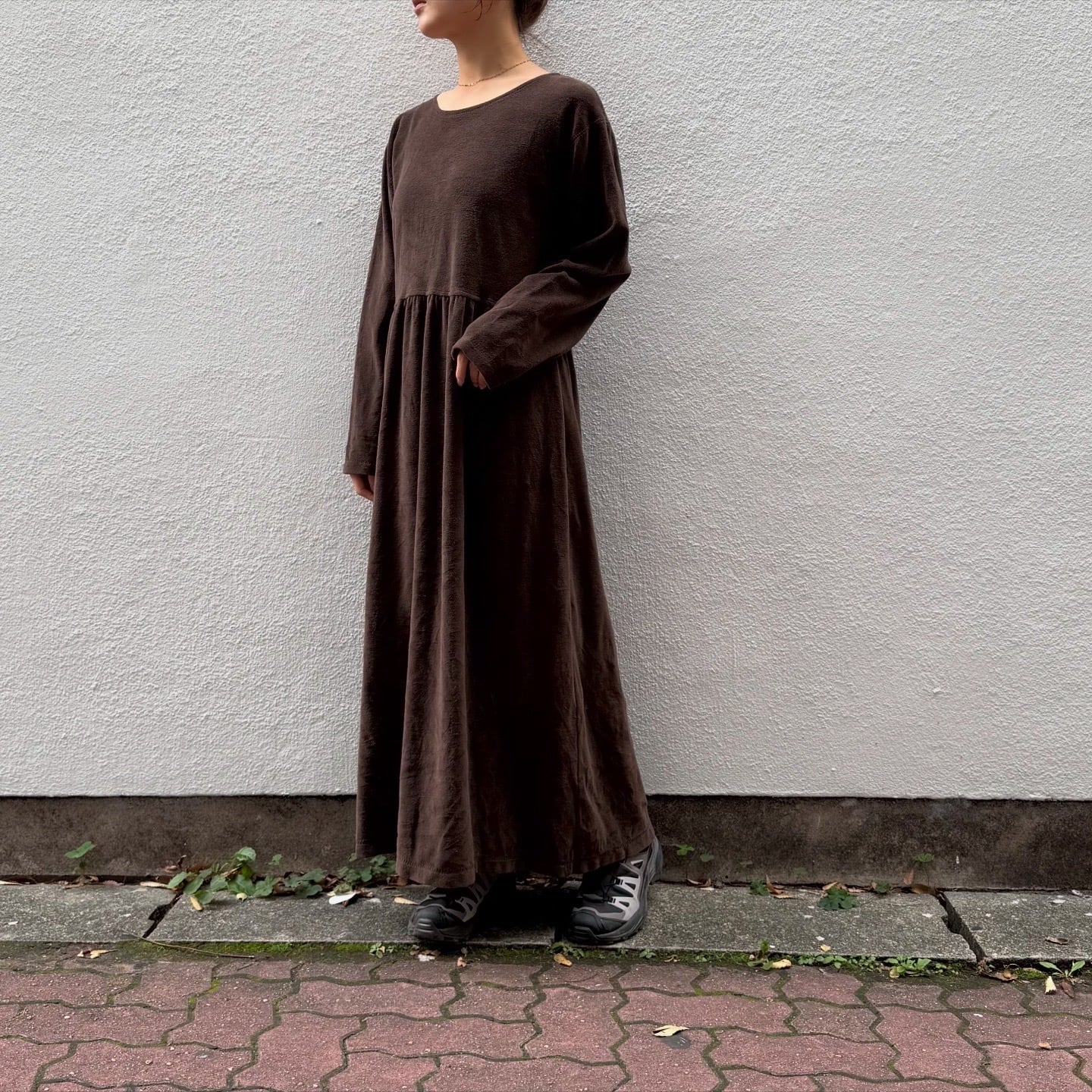 マット感の強いブラウンのベロアが素敵なワンピースです。