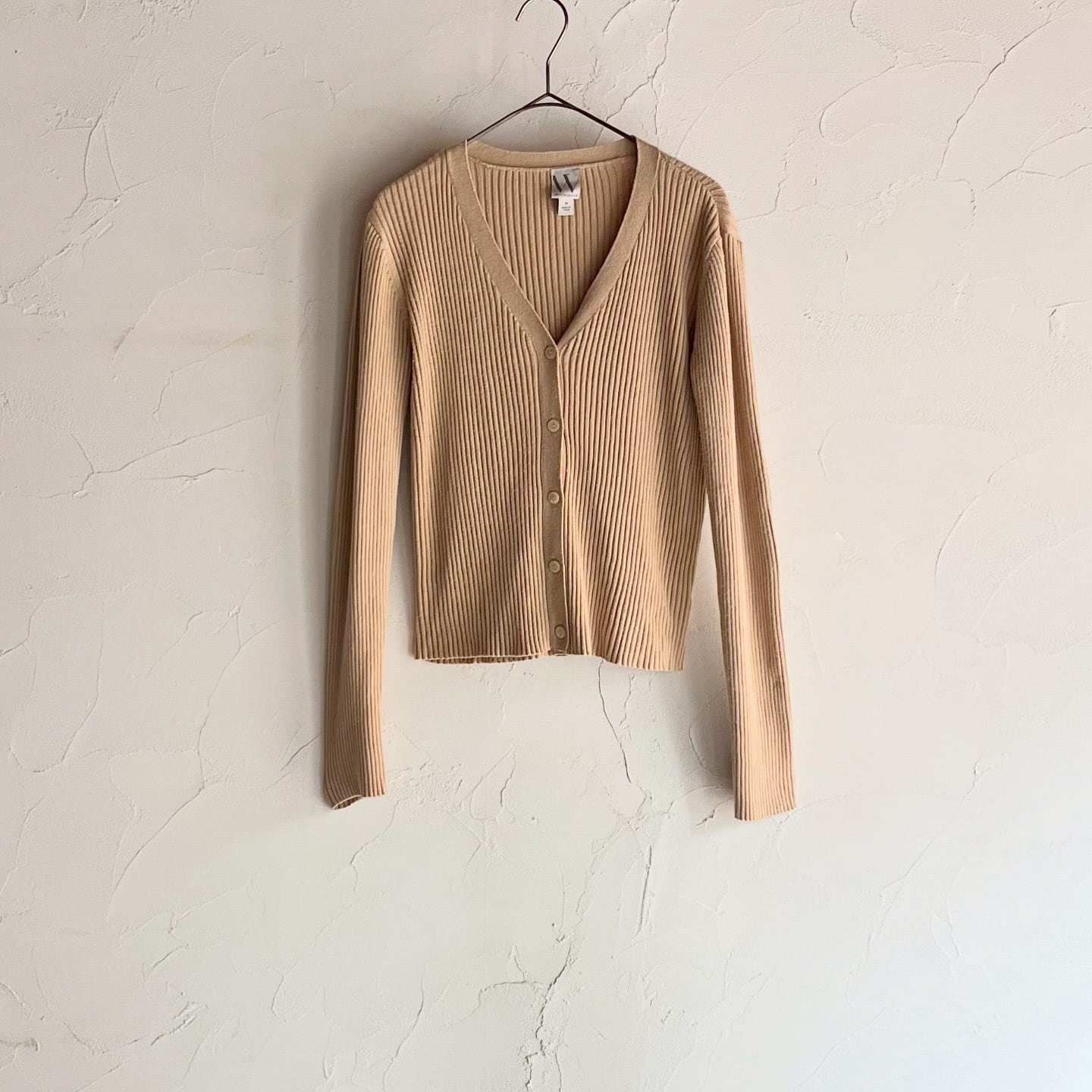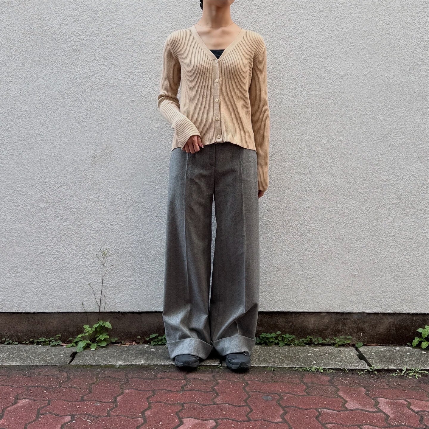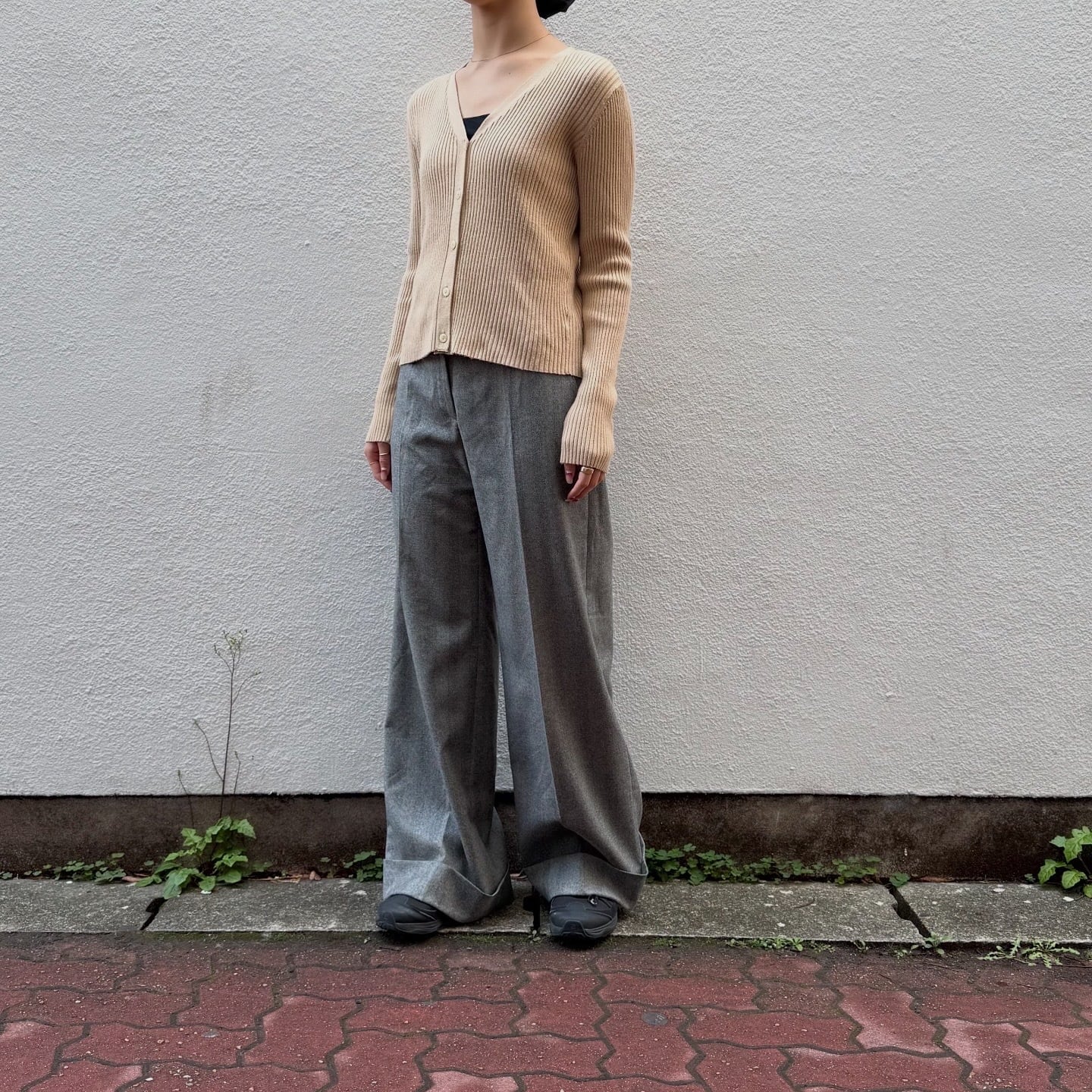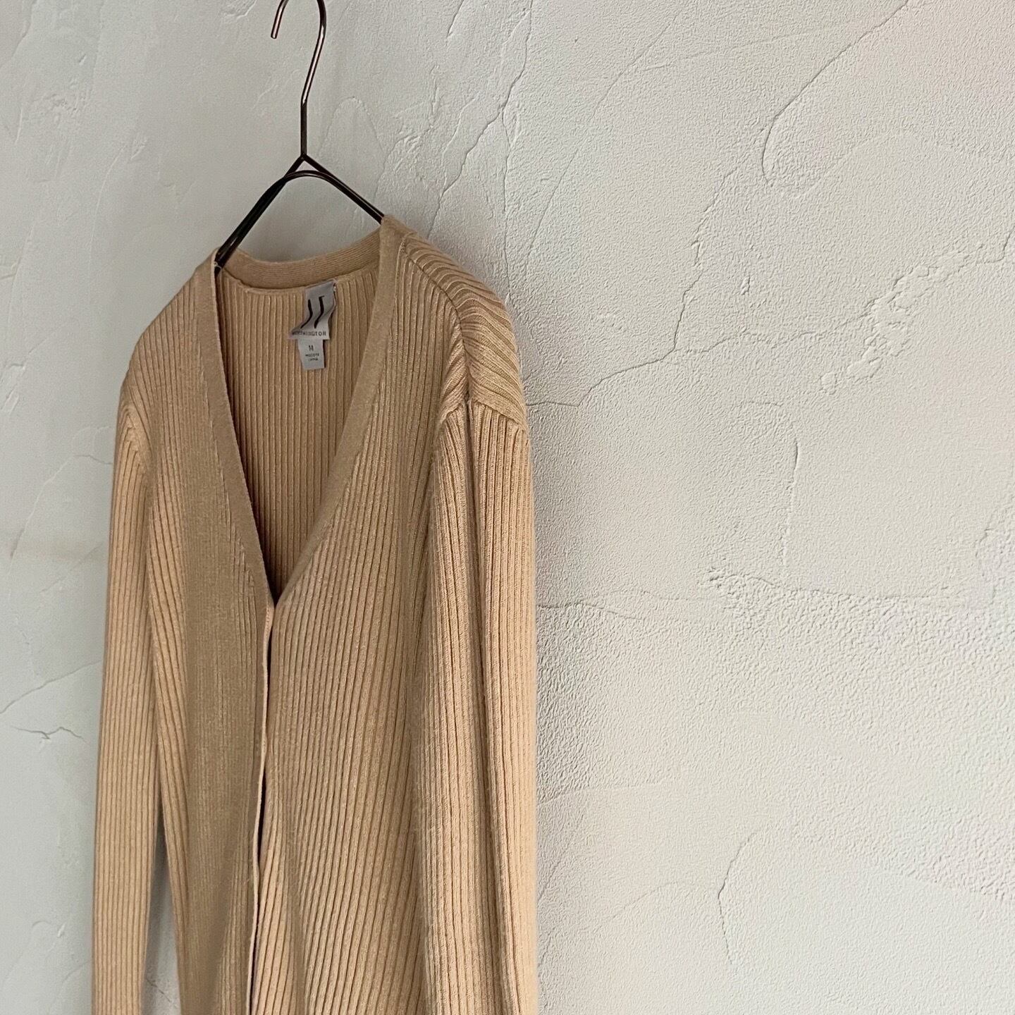しっかりとした地厚な生地感のリブニットカーディガンです。ラインを拾いすぎず、程よくぴたっとしたシルエットです。