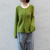 深いグリーンや華奢なシェルボタンが素敵なモヘアニットカーディガンです。とっても柔らかく軽い着心地です。