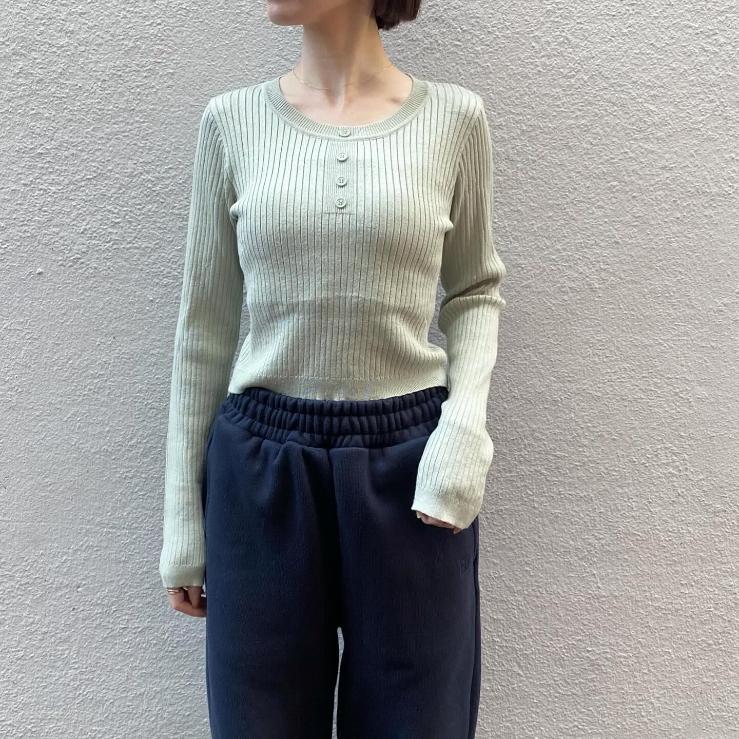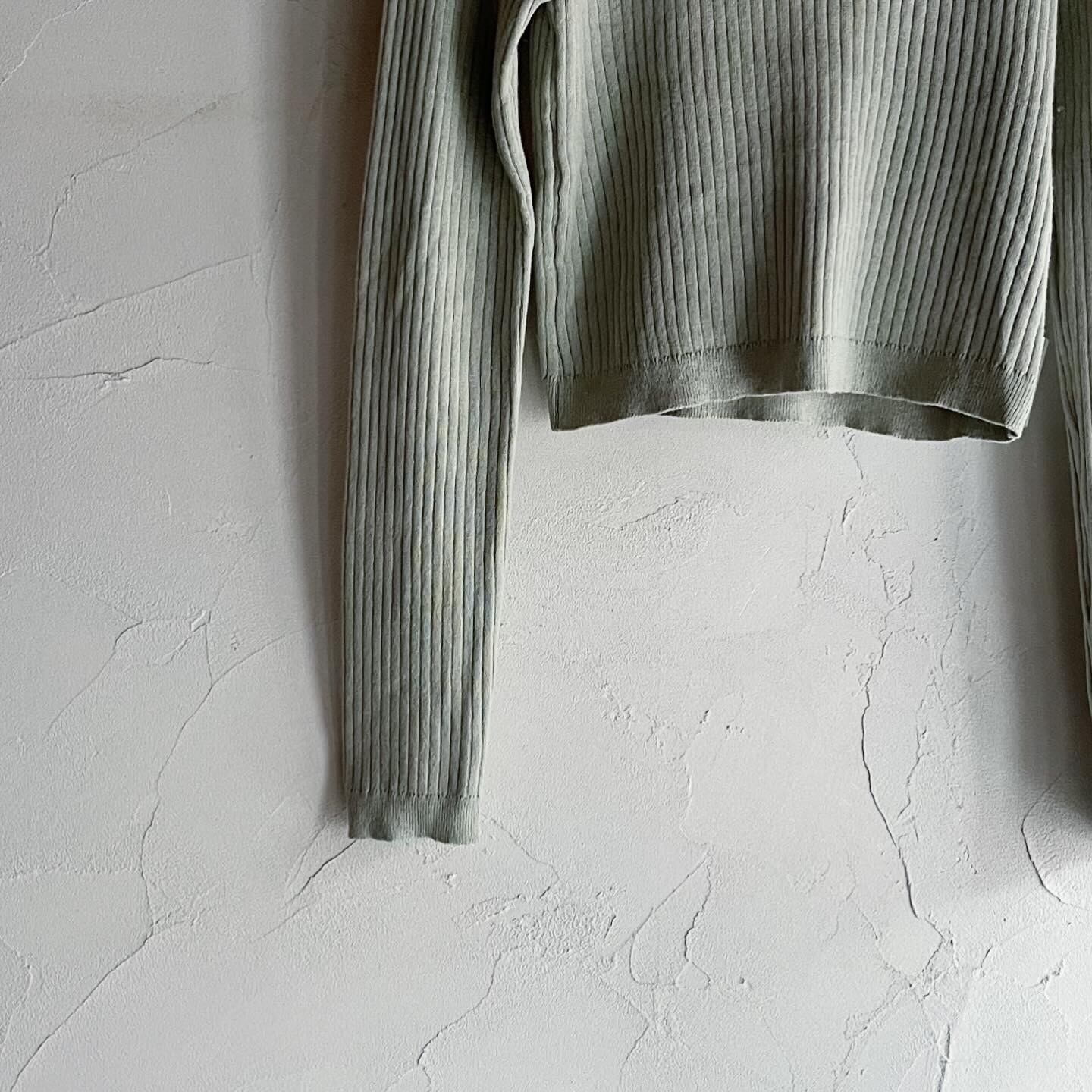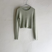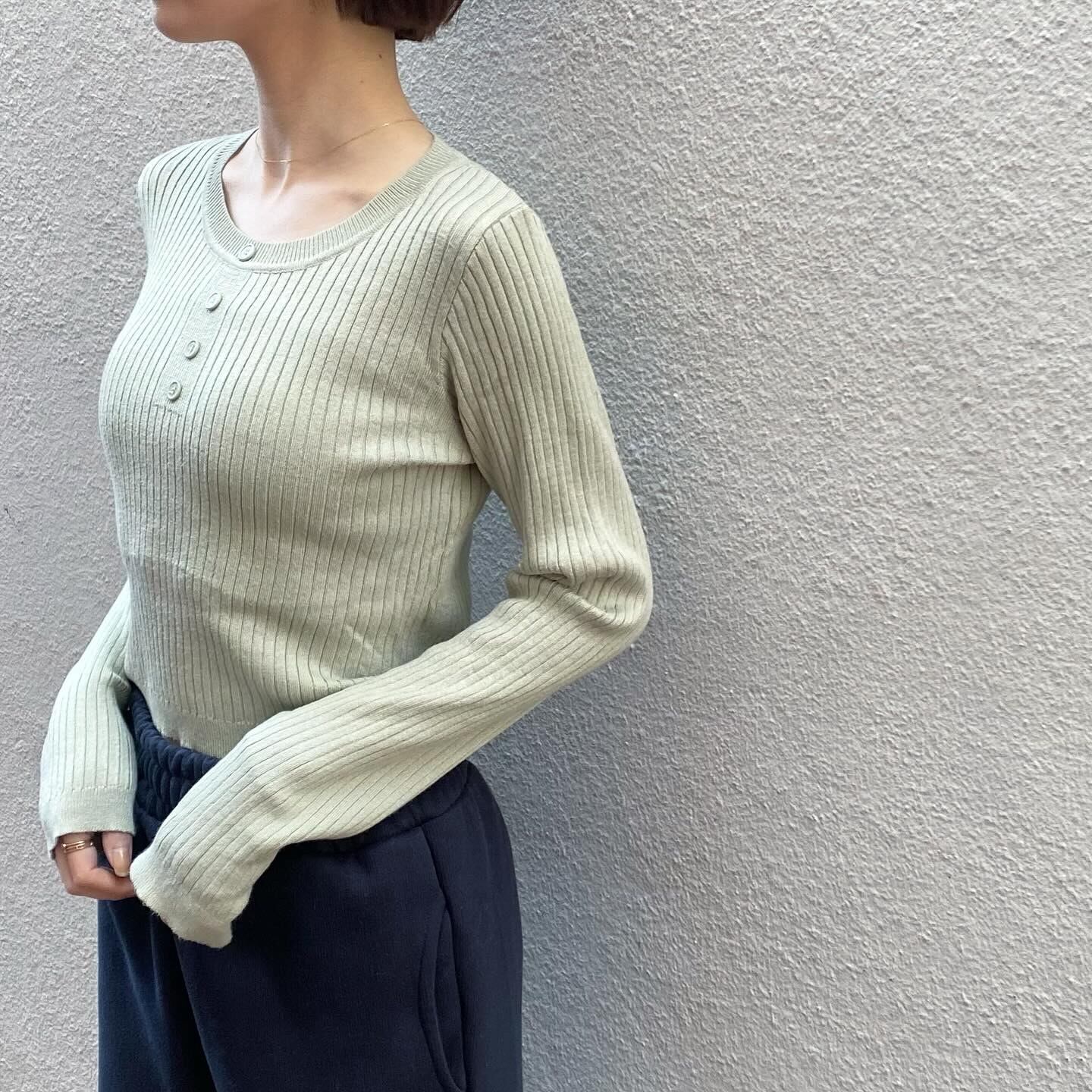 柔らかいグリーンの色味が素敵なニットトップスです。