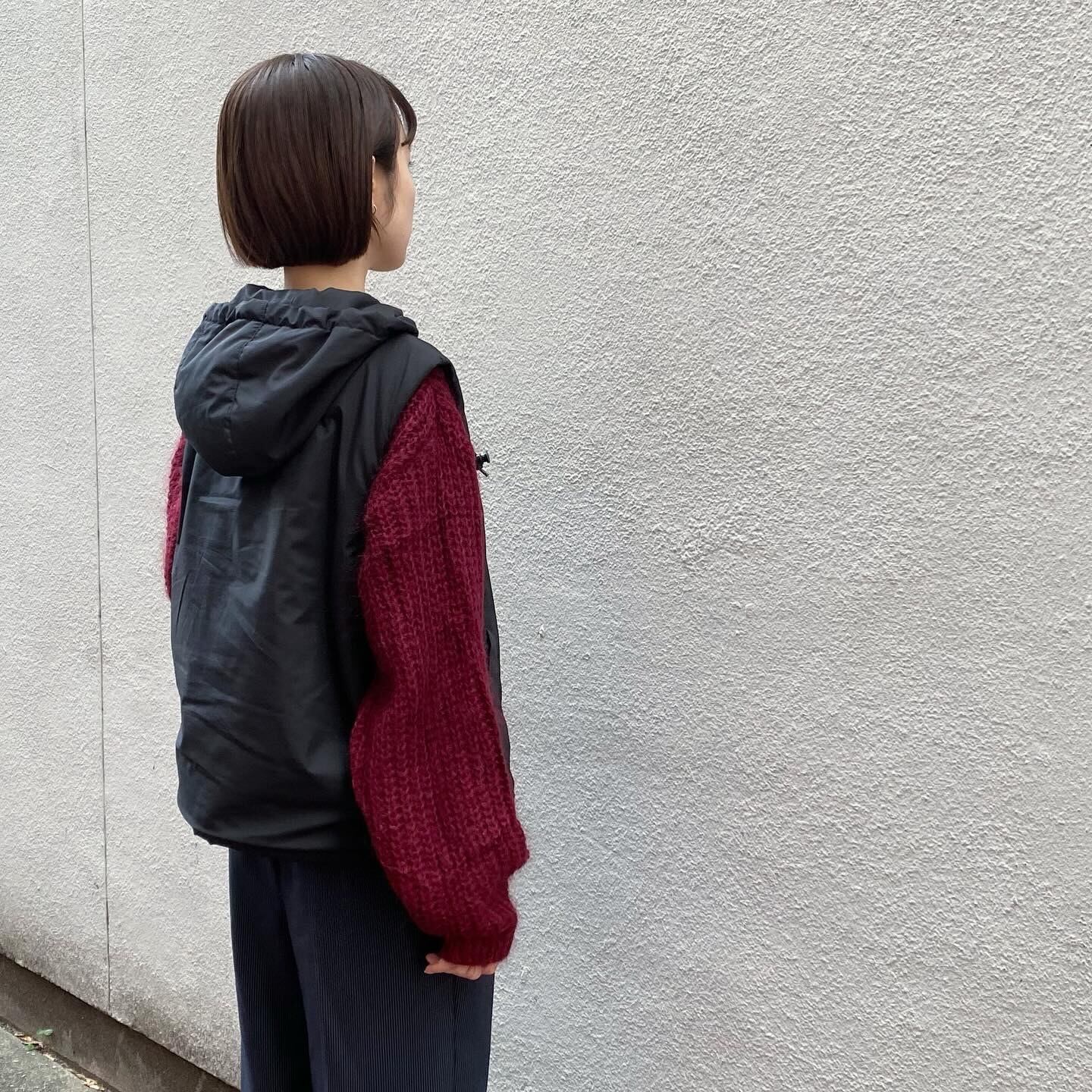 軽い生地感で嵩張らないですが、袖幅が広めなのでニットやスウェットもレイヤード可能です。
