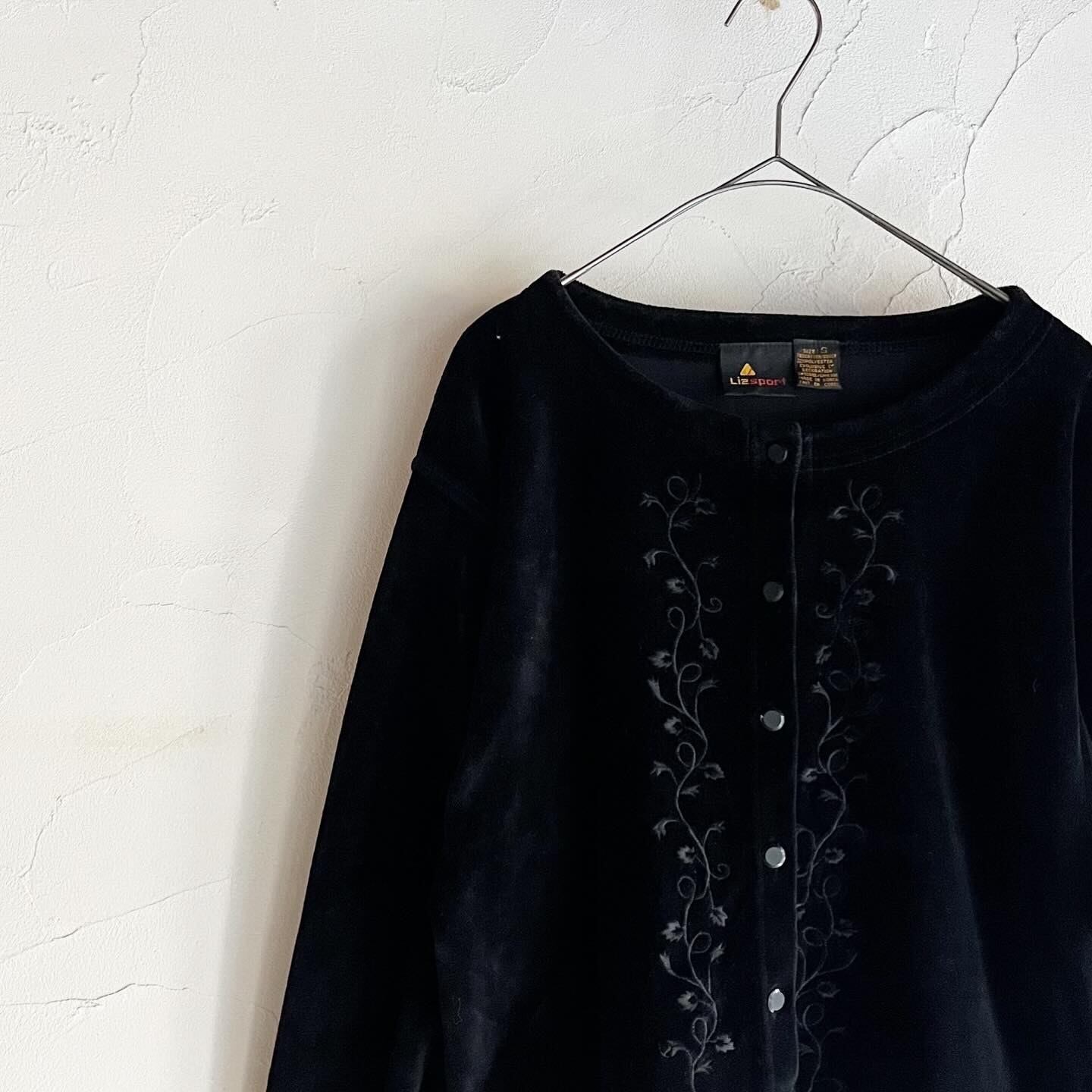 フロントと袖口の生地と同色の繊細な刺繍が素敵なベロアカーディガンです。少し短めの着丈なので、インでもアウトでもお召し頂けます。