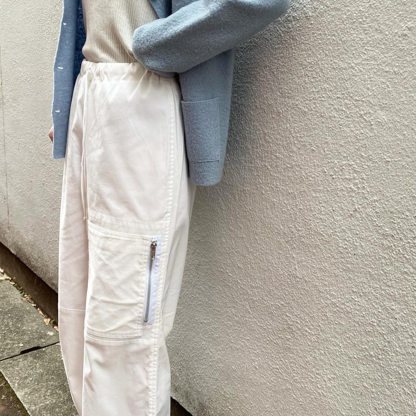 生地感がしっかりしており程よい太さのシルエットのためカジュアルにも綺麗めなスタイルにも合わせやすい1枚です。