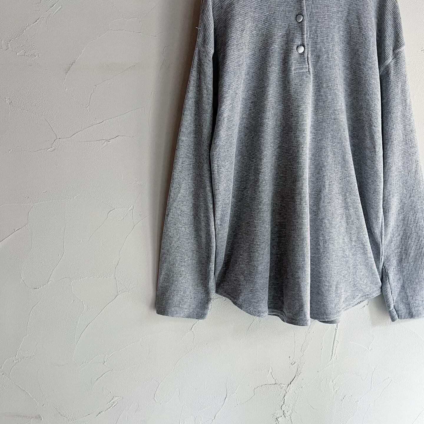 裾のラウンドカットや丸襟のラフな抜け感が可愛いサーマルトップスです。