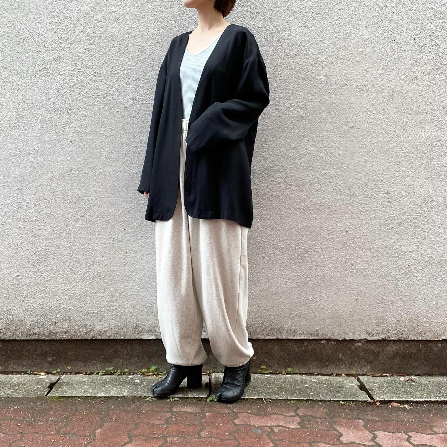 ゆったりとした落ち感のあるシルエットが綺麗なノーカラージャケットです。